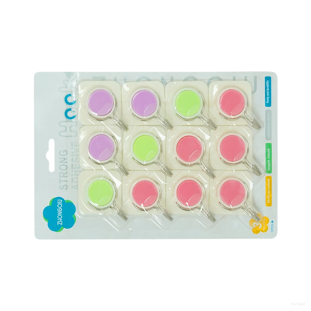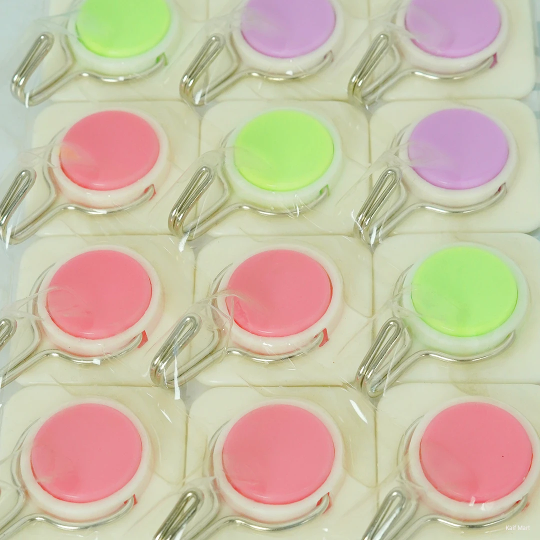 These strong adhesive wall hooks are perfect for organizing your home without drilling or damaging walls. Made with high-quality adhesive material, they provide a firm and durable hold for everyday items. The colorful round design adds a neat and modern look while being highly practical. Easy to install and remove, these hooks are ideal for use in kitchens, bathrooms, bedrooms, offices, and more.